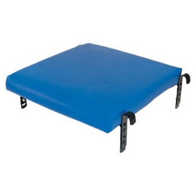 Made with Naugahyde, nylon, or mesh. 1 1/2" foam and 1/2" wood. Fits 18" adult wheelchair. Special sizes and materials available upon request. Black, zinc-plated stainless steel hardware.
