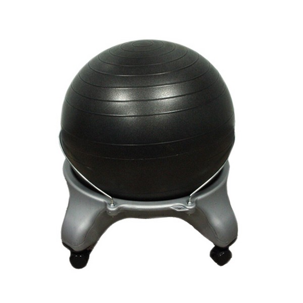 Versatile exercise ball chair includes a 22"(55cm) inflatable exercise ball which holds securely in place. Use as a chair without back, or use as an inflatable exercise dome. Casters have locking mechanism to make chair stationary. Lock casters when using during vestibular exercises.
