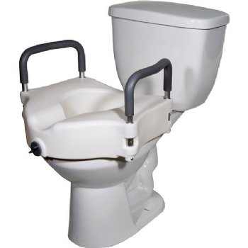Clamping Raised Toilet Seat - With Removable Arms is a heavy-duty molded plastic construction, has foam padding that extends the entire length of armrest for added comfort and fits most toilets.
