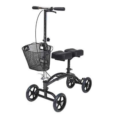 A knee walker is a medical device that is designed to give sufferers of foot and ankle injuries the mobility they need to get back to their normal lifestyle. Knee walkers allow for assisted mobility, which means while you are rehabilitating your injured foot or ankle, you can get back to work, get around the house with ease and complete your daily tasks. Knee walkers are designed for convenience, comfort and stability. A steerable knee walker allows the operator to guide the knee walker in any direction they want to travel. Knee walkers are light weight and easy to fold in order to be stored or transported.