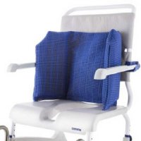 3-panel pillow with mesh cover sits on shower chair seat to give more cushion behind the back. Can also be used if the seating area is too big. Does not attach but simply sits behind the user and pads back and sides.
