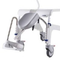 Calf support for Ergo and Ocean Shower chairs, This will replace the left or right foot support on the chair. It is height adjustable in the hanger using the blue clip. The pad can be slid along the lower tube for the best length, The lower tube is angle adjustable to the plane of the seat. the assembly will swing away for transfers.