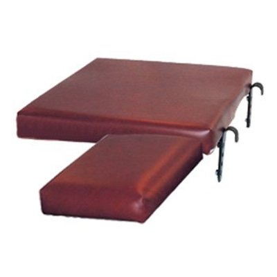 Made with Naugahyde, nylon, or mesh, 1 1/2" foam and 1/2" wood. Black, zinc-plated, stainless-steel drop hooks. Fits standard 18" adult wheelchair.