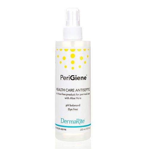 PeriGiene Rinse-Free Cleanser is an antimicrobial, Aloe-based perineal spray that cleans, moisturizes, and deodorizes without rinsing—perfect for sensitive skin and incontinence care.